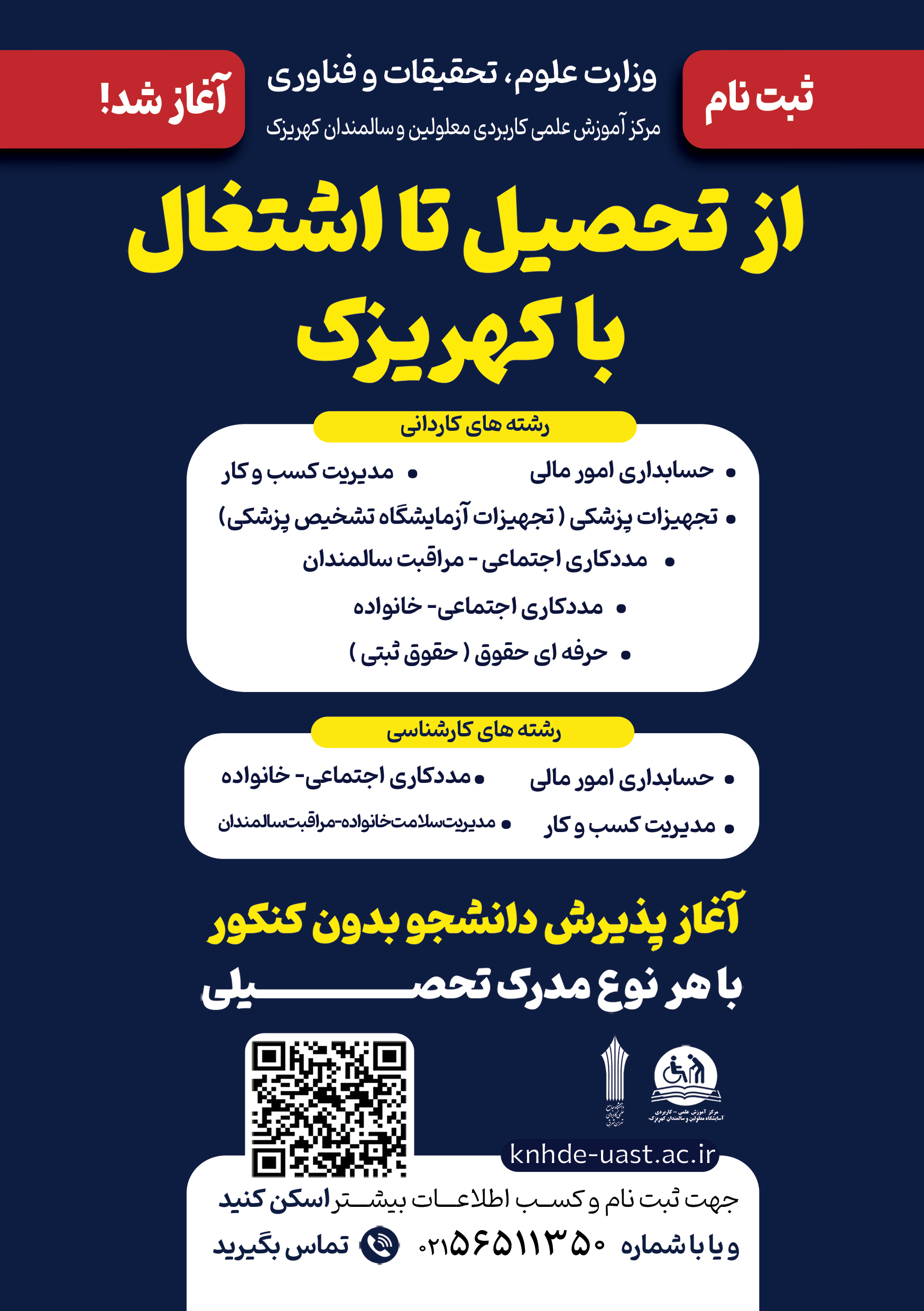 مرکز علمی کاربردی کهریزک به اطلاع علاقمندان به ادامه تحصیل میرساند که پیش ثبتنام ترم جدید در شهریور ماه ساجاری آغاز شده است. این مرکز با هدف ارتقاء سطح آموزشی و فراهمآوری فرصتهای یادگیری کاربردی، پذیرش دانشجو در مقاطع کاردانی و کارشناسی حرفهای ناپیوسته در رشتههای متنوع مهارتی را آغاز نموده است.